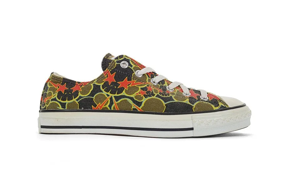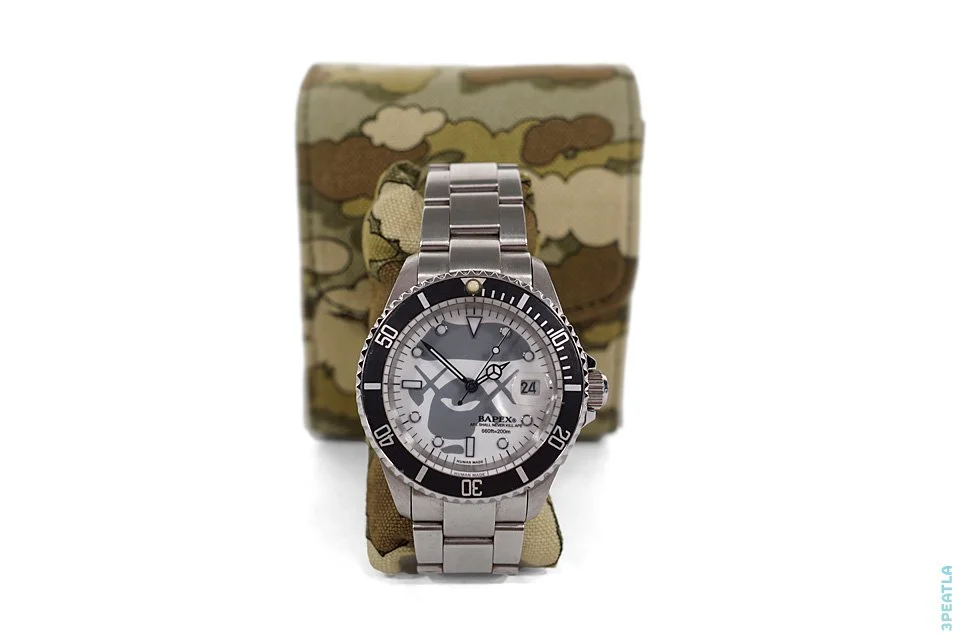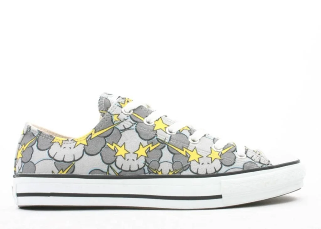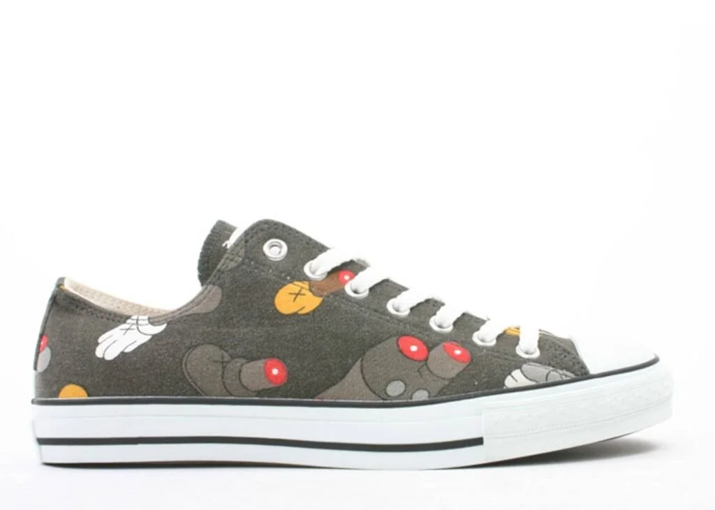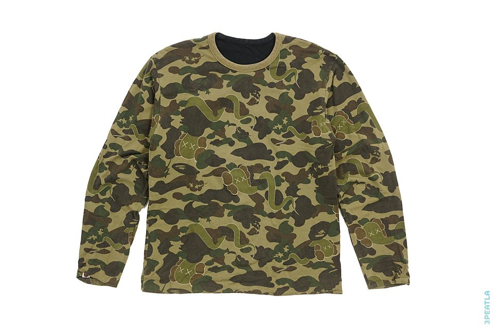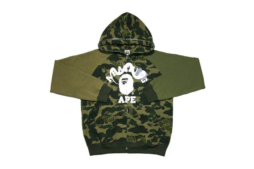 KAWS’ collaboration with A Bathing Ape (BAPE) brought together his signature Companion and Chum characters, along with the iconic “XX” motif, and integrated them into BAPE’s distinct Ape Camo, Baby Milo graphics, and BAPESTA sneakers. The partnership spanned apparel, footwear, and accessories, becoming one of the earliest examples of KAWS’ work crossing into Japanese streetwear.