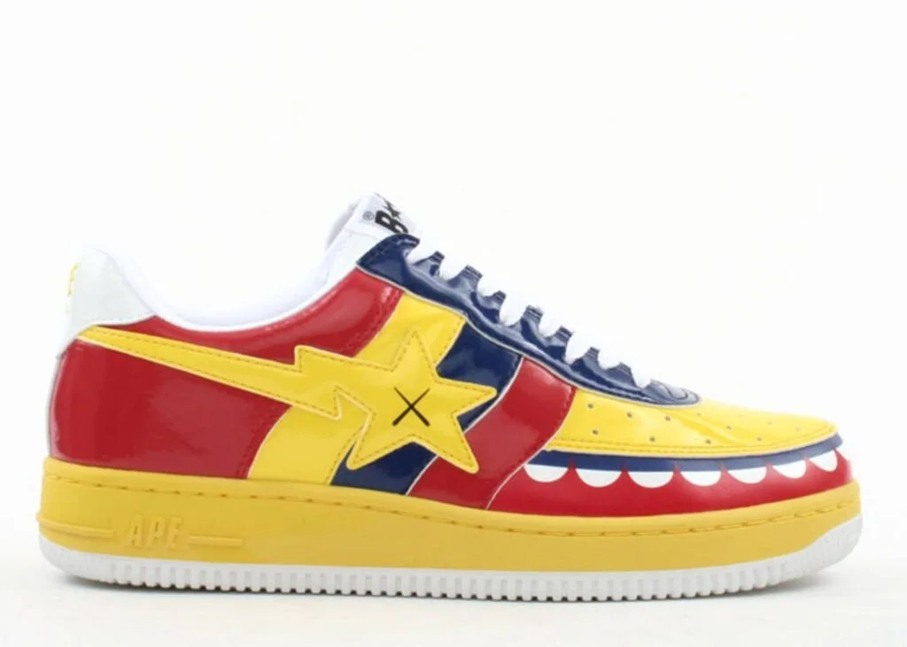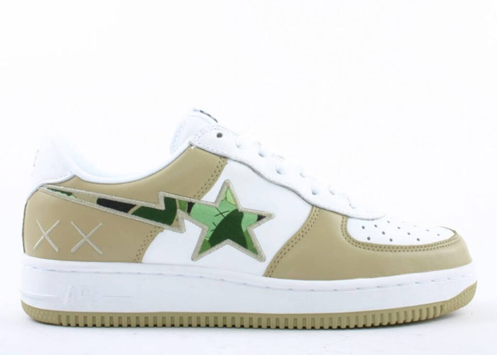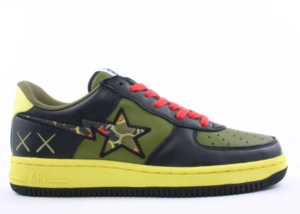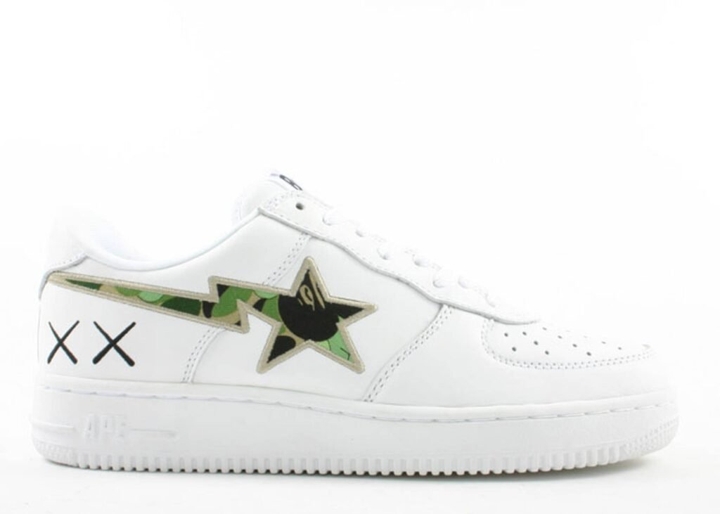 The collaboration debuted on BAPESTA sneakers featuring KAWS’ “XX” branding on the eyes of BAPE’s ape head logo. Colorways ranged from classic black and white to bold camo overlays, each limited in release. These sneakers became instantly sought-after by collectors in both streetwear and contemporary art communities.