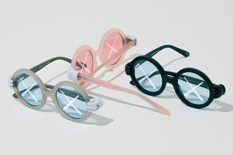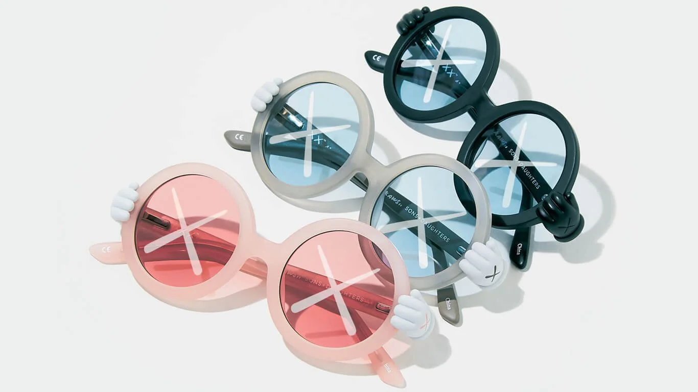 KAWS partnered with Sons + Daughters to create a limited-edition kids’ eyewear line that blends his signature XX motif, Companion-hand hinge details, and premium materials in fun colourways.