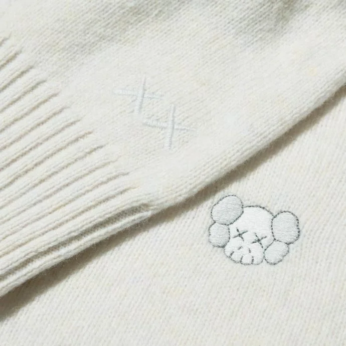 Crafted around winter essentials, the lineup included premium cashmere crew-necks, lambswool pieces, and a full suite of HEATTECH accessories; beanies, scarves, gloves, plus kids’ versions in Soufflé Yarn. Each item featured subtle yet unmistakable KAWS motifs: the “XX” mark and the iconic COMPANION character embroidered discreetly on chest or cuff. The design approach leaned into everyday wearability, merging UNIQLO’s minimalist LifeWear ethos with KAWS’s pop-culture visual vocabulary.