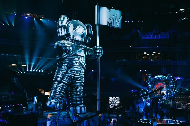 In 2013, MTV marked the 30th anniversary of its Video Music Awards with a Brooklyn-based show at the Barclays Center—the first time the event was held in the borough. To commemorate the milestone, MTV invited KAWS to reimagine the Moonman trophy, turning the astronaut into one of his Companion characters. The redesign became both a collectible award and a large-scale public artwork.