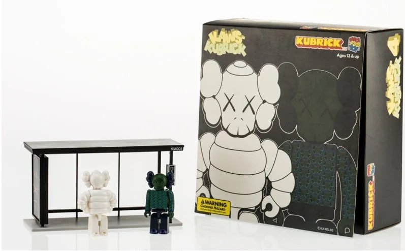 KAWS and Medicom Toy released the Bus Stop Kubrick set in 2002, a coveted box set of five figures capturing the artist’s early subversive style and his knack for remixing pop iconography with graphic minimalism.