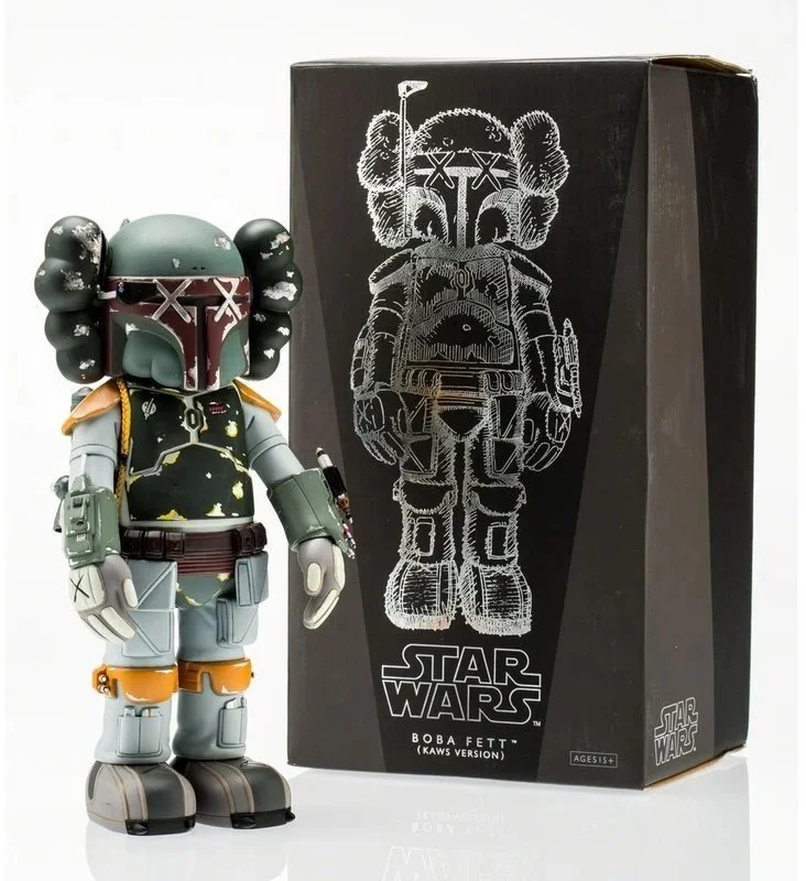 The figure was produced by Medicom Toy and distributed through OriginalFake and select partners in an edition of 500. It retailed for $200 at launch and quickly sold out, becoming one of the most sought-after KAWS crossover pieces. With its blend of nostalgia, collectible scale, and sharp sculptural detail, the Boba Fett Companion cemented KAWS’s place in the world of licensed pop culture reinterpretation and remains a high-value collectible for fans of both Star Wars and contemporary vinyl art.